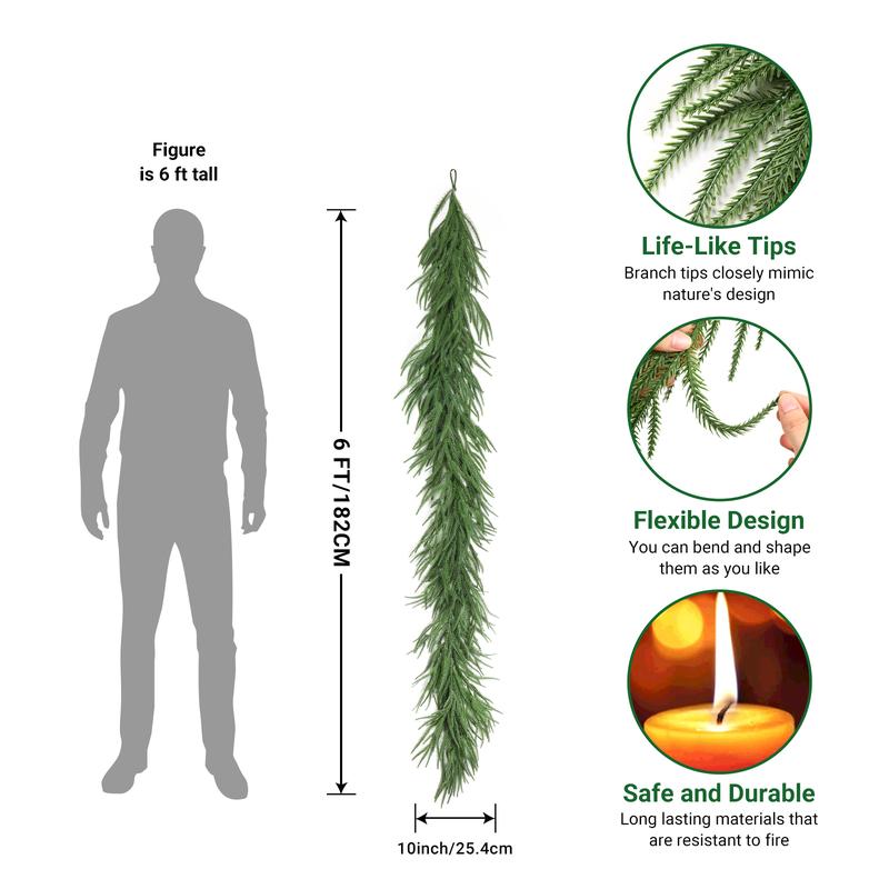 - 🎄【High-Quality Materials】These Christmas pine garlands are made from premium PE materials, resistant to fading and damage, and can withstand most weather conditions, making them suitable for both indoor and outdoor celebrations. You can bend and shape them as desired, ensuring they maintain their lasting charm throughout the Christmas festivities, whether by the fireplace or in a winter wonderland.